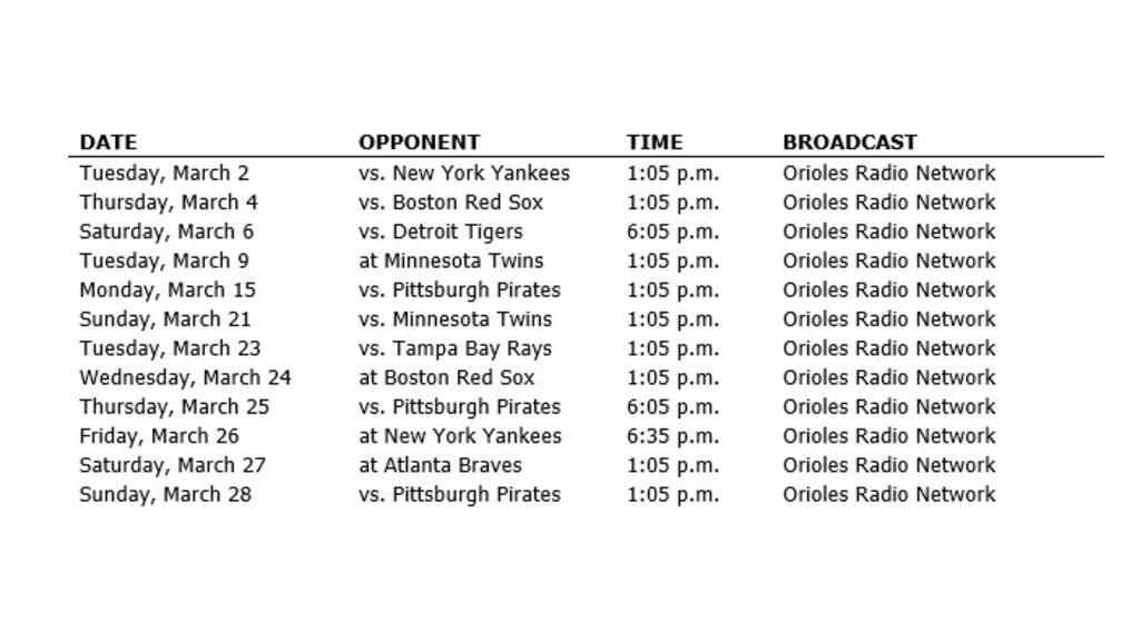 Press Release Orioles Announce 2021 Spring Training Radio Broadcast Schedule